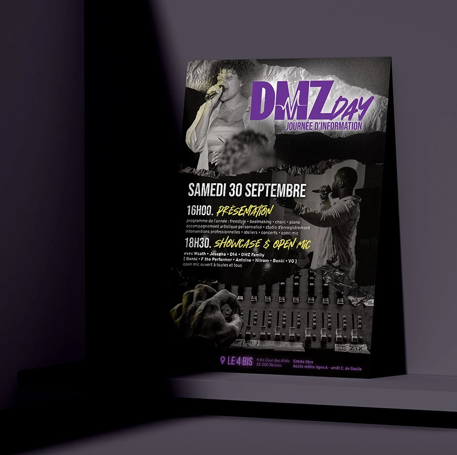Communication multi-supports pour une journée d'information et de concerts à l'occasion de la rentrée associative du collectif DMZ.