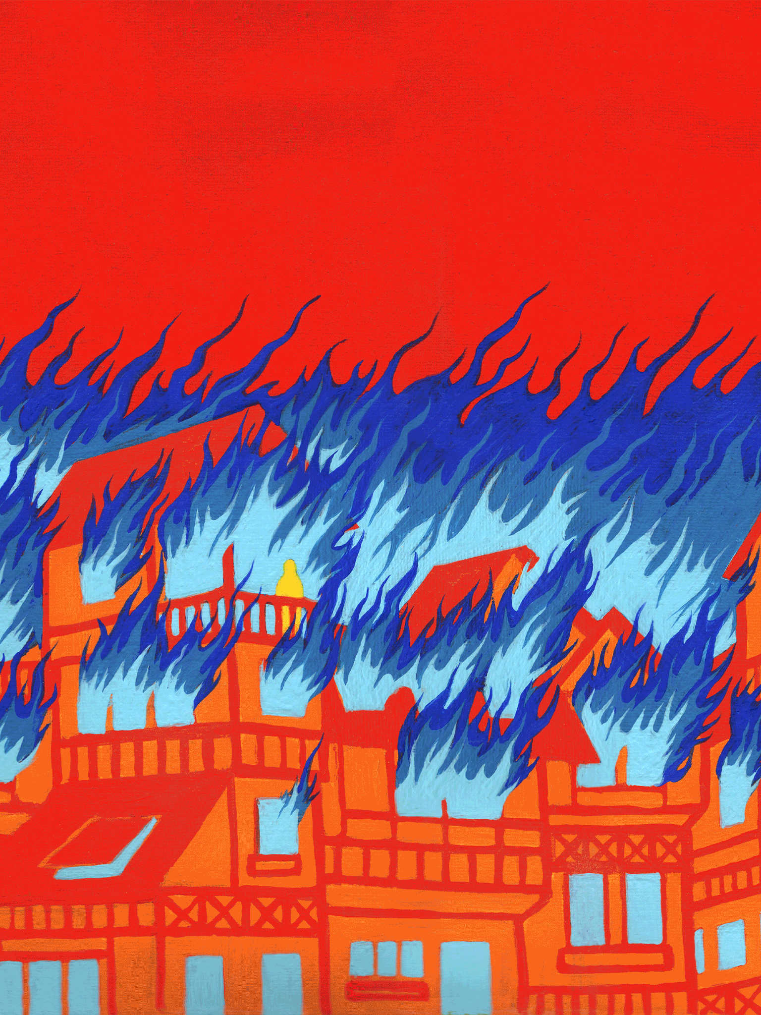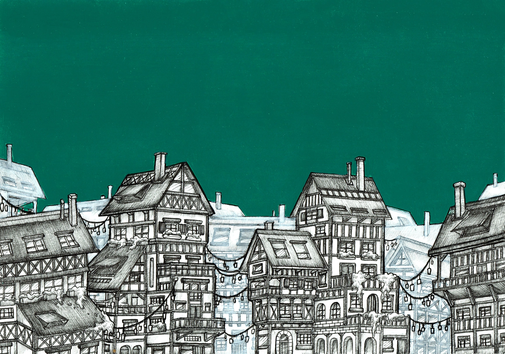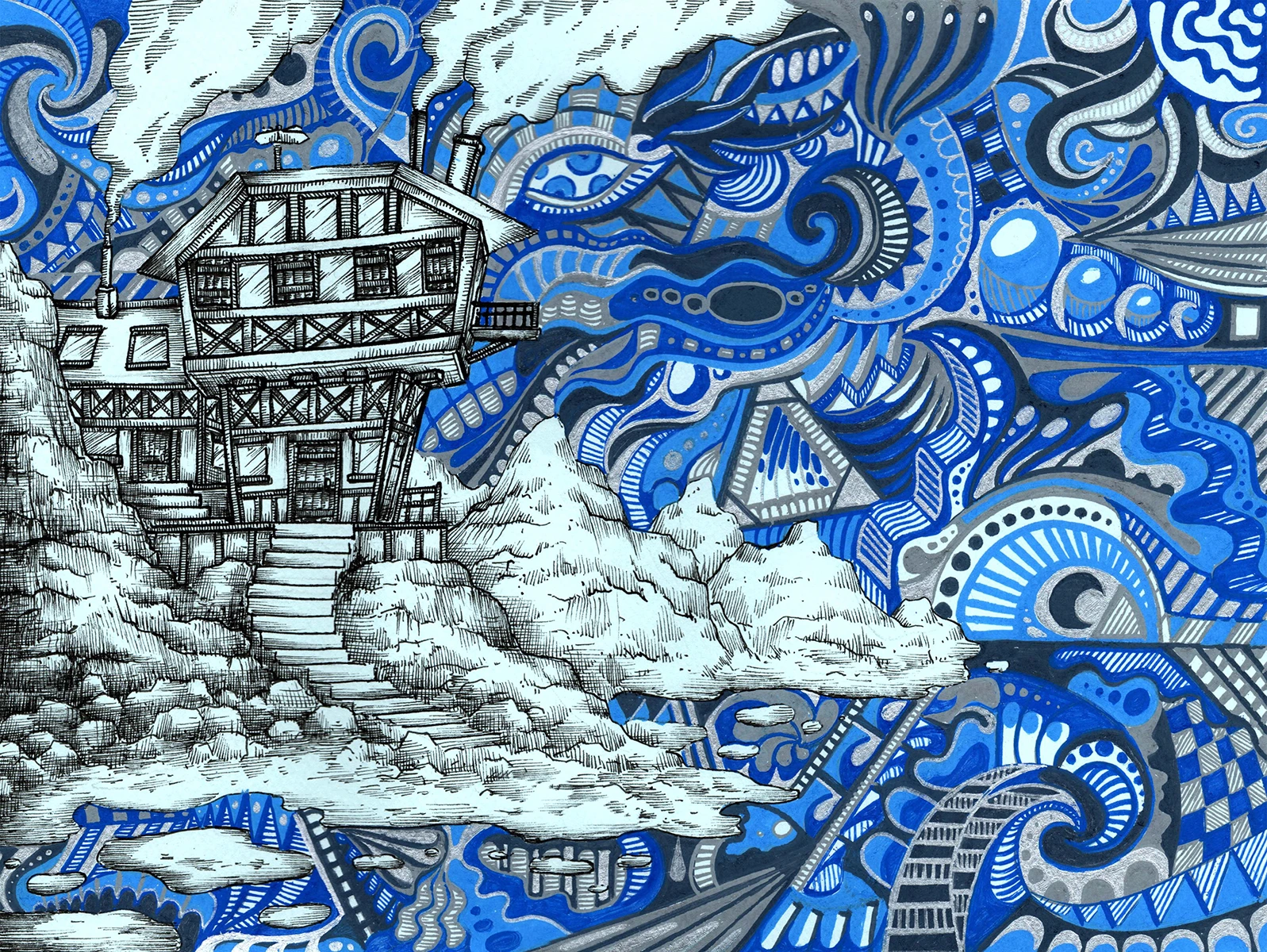 Tracé au feutre fin, mise en couleurs au feutre à alcool et retouches numériques.