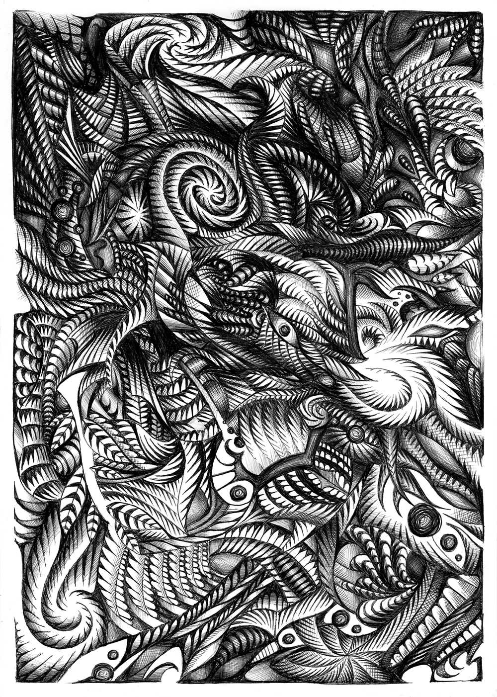 Feutre fin noir et posca sur papier Canson, 24x32cm.
